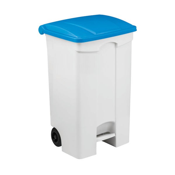 CONTENITORE CONTITOP IN PLASTICA MOBILE( 2 RUOTE) A PEDALE COL. BIANCO C/COPERCHIO BLU 90 LT "SO"